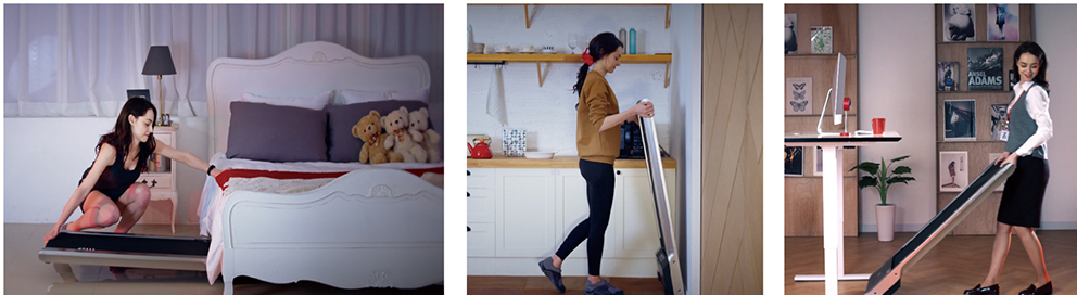 Díky kompaktnímu a štíhlému designu je manipulace a uskladnění chodícího pásu WalkRo velmi jednoduché.